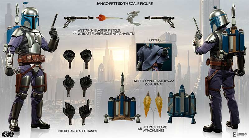 Joining the Star Wars Scum and Villainy collection, stage exciting showdowns from the final years of the Republic with the Sideshow Collectibles Jango Fett Sixth Scale Figure.